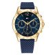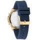 Mouvement multifonctionÉpaisseur du boîtier 8,5 mm / diamètre du boîtier 38 mmCadran Sunray bleu marineBracelet bleu marine en siliconeRésistance à l'eau 3 ATMBoutons poussoirs décoratifs