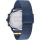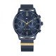 Mouvement multifonction.Diamètre du boîtier : 38 mm, épaisseur du boîtier : 8,95 mm.Cadran bleu marine.Bracelet en maille bleue avec revêtement IP.Résistant à l'eau jusqu'à 3 bars.